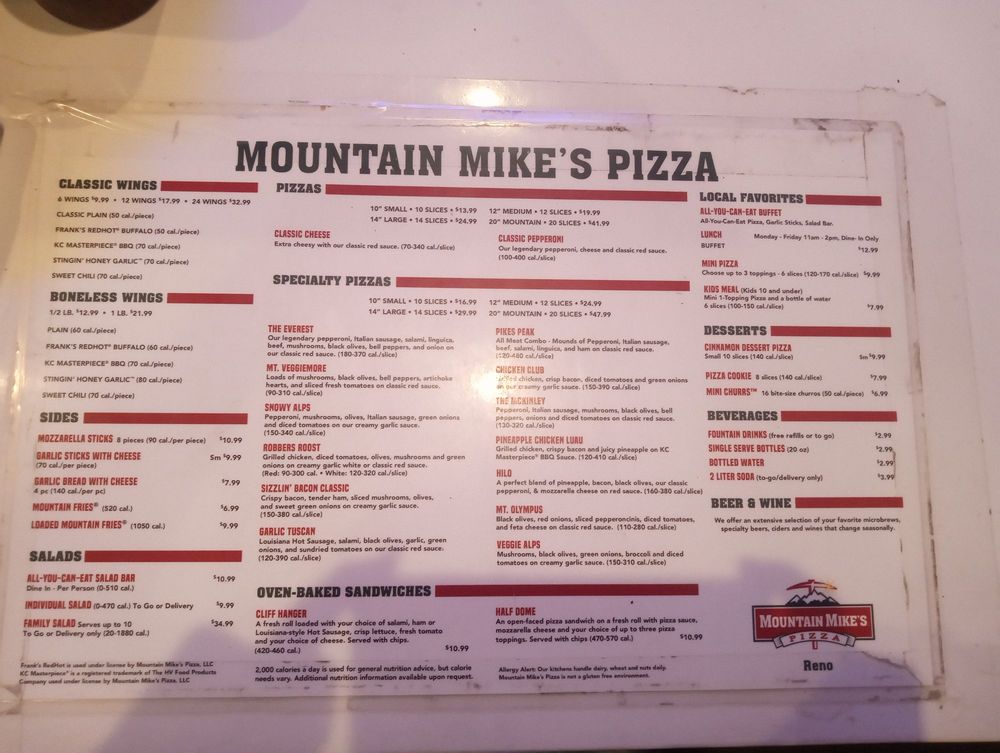 Mountain Mike's Pizza Reno Menu (Update 2025)